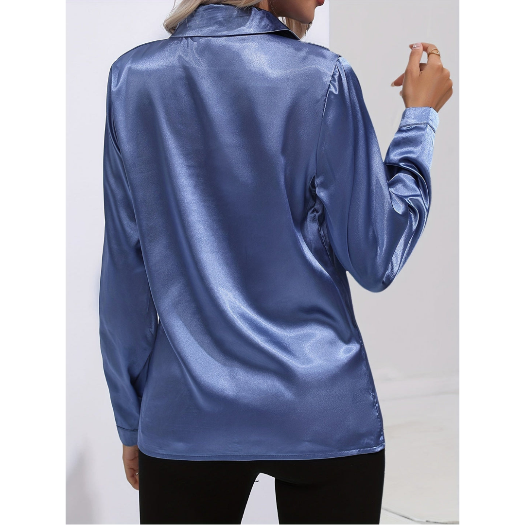 Dieses Hemd hat ein Kragen-Design mit langen Ärmeln. Es verfügt über eine durchgehende Knopfleiste und saubere Abschlüsse an den Manschetten und dem Saum. Die Vorder- und Rückseite sind schlicht und glatt, mit einem gepflegten, eleganten Erscheinungsbild.