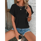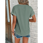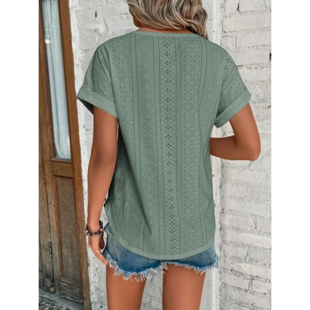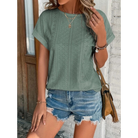 Dieses Kurzarm-Oberteil zeichnet sich durch ein durchgehendes Lochmuster und umgeschlagene Ärmel aus. Der runde Halsausschnitt und der gerade Saum unterstreichen das schlichte Design. Mit einem klaren und ordentlichen Muster bietet es eine lässige, aber dennoch gepflegte Ausstrahlung von vorne und hinten.