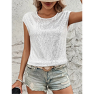 Dieses Top besticht durch ein einfaches Design mit ärmelloser Form und funkelnden Pailletten. Die lockere Passform und der schlichte Ausschnitt sorgen für einen geradlinigen, aber stilvollen Look. Es handelt sich um ein leichtes Top, das problemlos mit verschiedenen Outfits kombiniert werden kann.