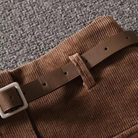Dieser Rock besteht aus strukturiertem Stoff mit geradem Schnitt und sichtbaren Nahtdetails. Die Vorderseite hat zwei große Pattentaschen, die das Design ausgleichen. Ein passender Gürtel mit Metallschnalle betont die Taille, während der verarbeitete Saum die strukturierte Optik unterstreicht.