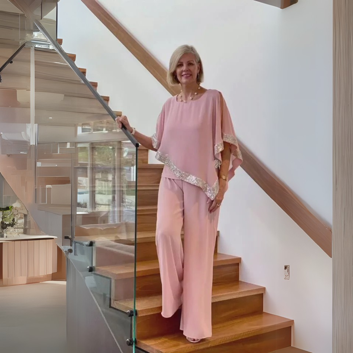 - Paillettenbesatz Detail: Die Kanten setzen Kontraste und betonen die mehrlagige Verarbeitung.